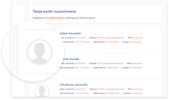 - Możliwość przeglądania kandydatów zarejestrowanych na portalu oraz zapraszania ich do przeprowadzanych procesów rekrutacyjnych
